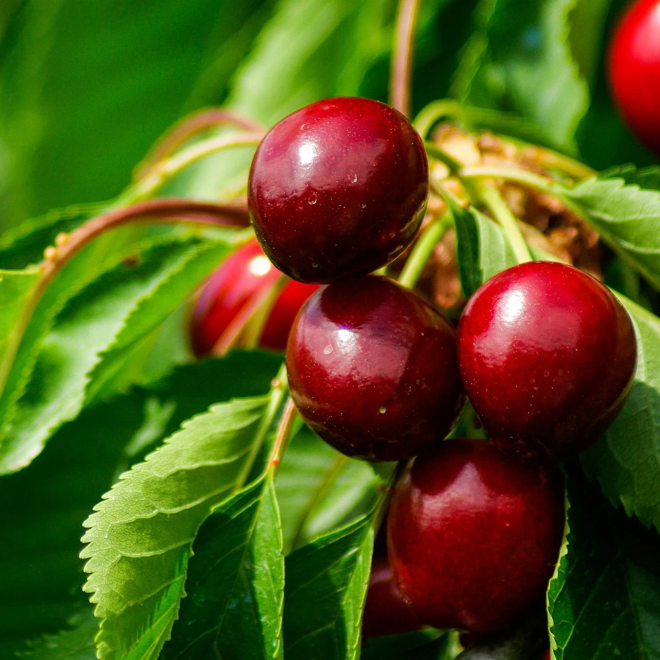 Zwei oder drei exklusive Kirschsorten an einem Baum.
