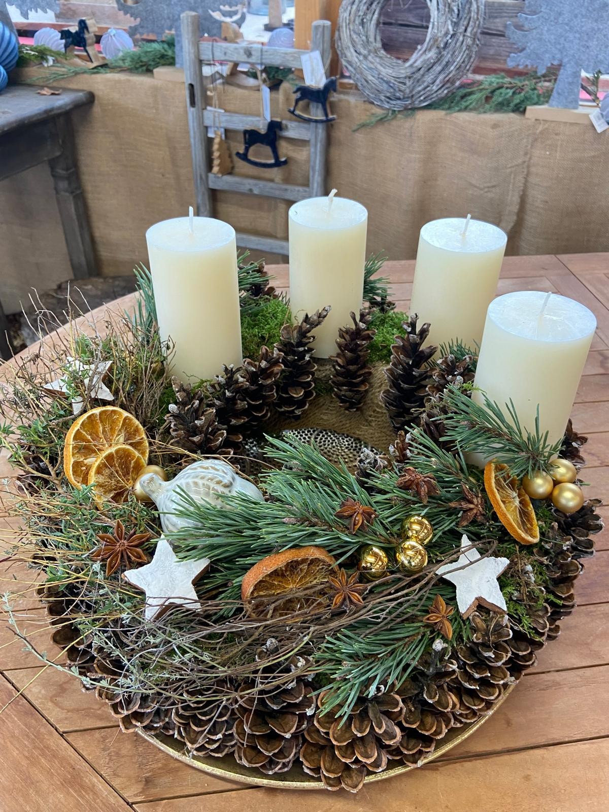 Im Preis inbegriffen sind die Kursgebühr, ein Strohrömer 35 cm, Kugeln, Zapfen, vier Kerzen in den Farben Honig oder Rot sowie Verpflegung mit Kaffee und Plätzchen.