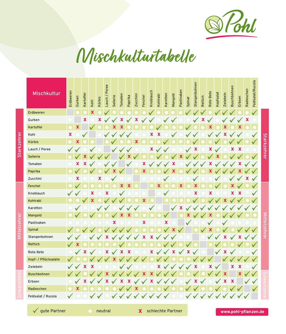 In einer Mischkultur werden unterschiedliche Gemüsesorten, Salate und Kräuter zusammen in einem Beet angebaut. Man kombiniert die Pflanzen so, dass sie sich im Wuchs gegenseitig positiv beeinflussen. Der richtige Pflanzenpartner kann außerdem vor Schädlingen und Pflanzenkrankheiten schützen.